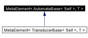 MetaElement<AutomataBase<Self>, T> defines the interface of every automaton that is the result of the interaction of a structural element (AutomataBase<Self>) and an implementation T.