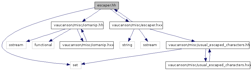| IO Manipulator to set the characters that need to be escaped. More... | |