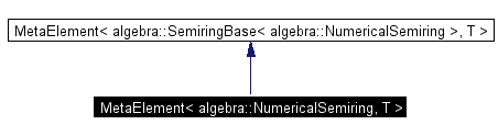Inheritance diagram for MetaElement< algebra::NumericalSemiring, T >: