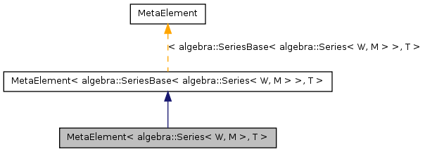 Inheritance diagram for MetaElement< algebra::Series< W, M >, T >:
