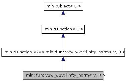 mln::fun::v2w_w2v::linfty_norm< V, R > Struct Template Reference