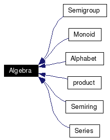 This group aggregates the documentation of compounds related to algebraic structures of Vaucanson, such as Monoids, Series, or rational expressions (as implementation of series).