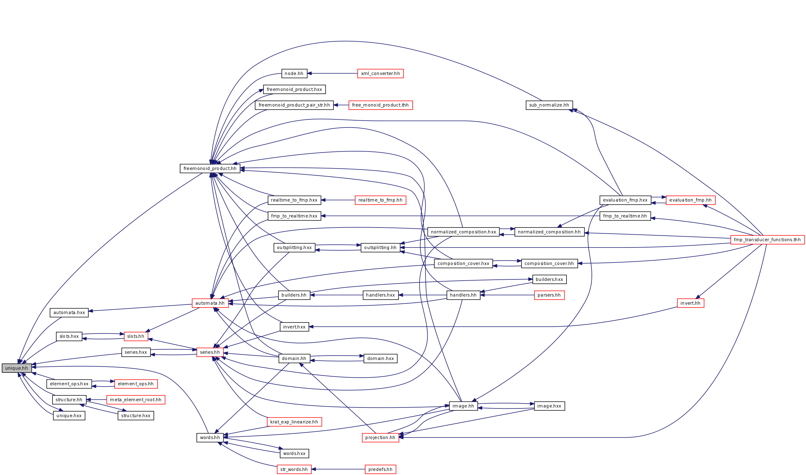 Include dependency graph for unique.hh: