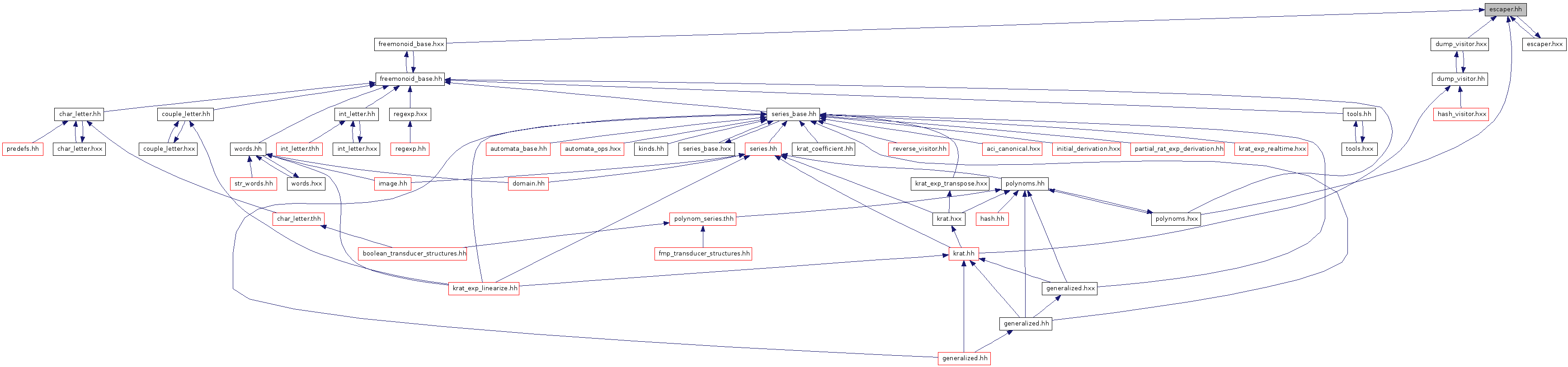 Include dependency graph for escaper.hh: