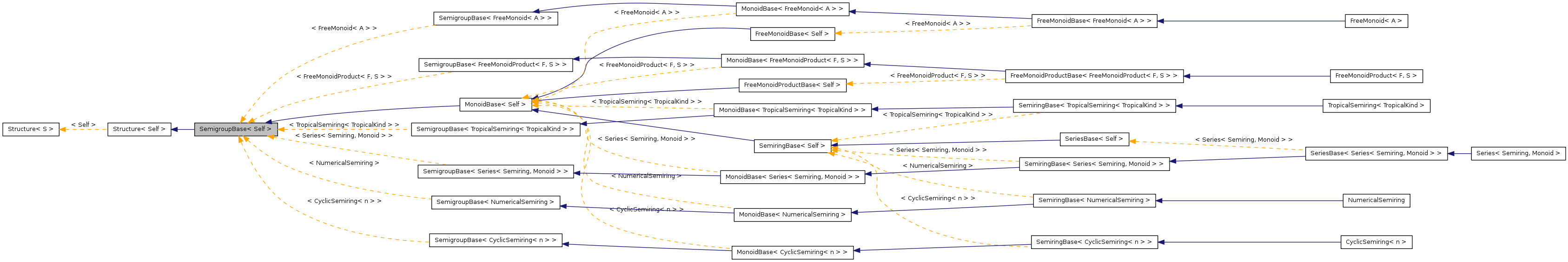 Inheritance diagram for SemigroupBase< Self >: