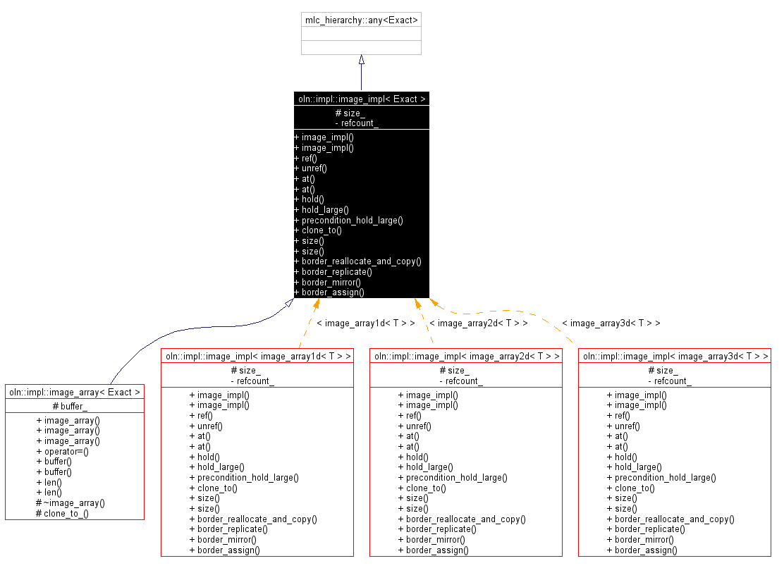 Inheritance diagram for oln::impl::image_impl< Exact >: